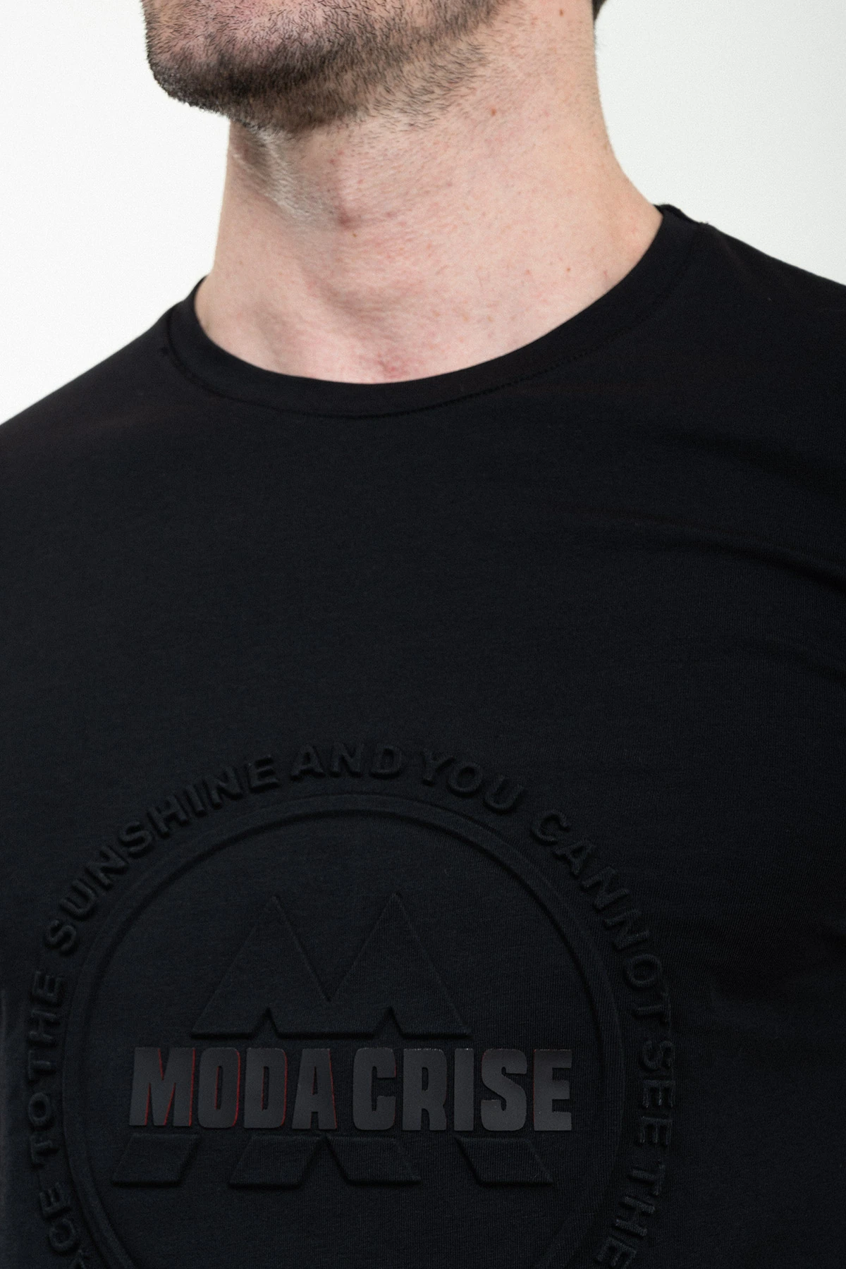 Baskılı Slim Fit Bisiklet Yaka Erkek T-Shirt - Siyah