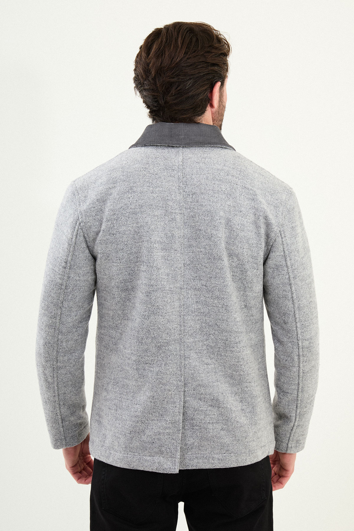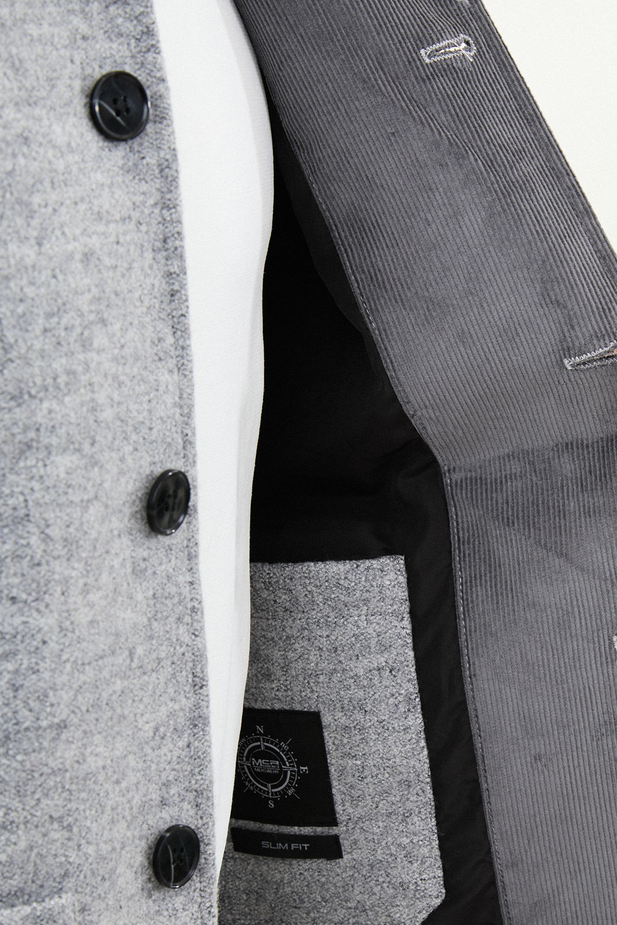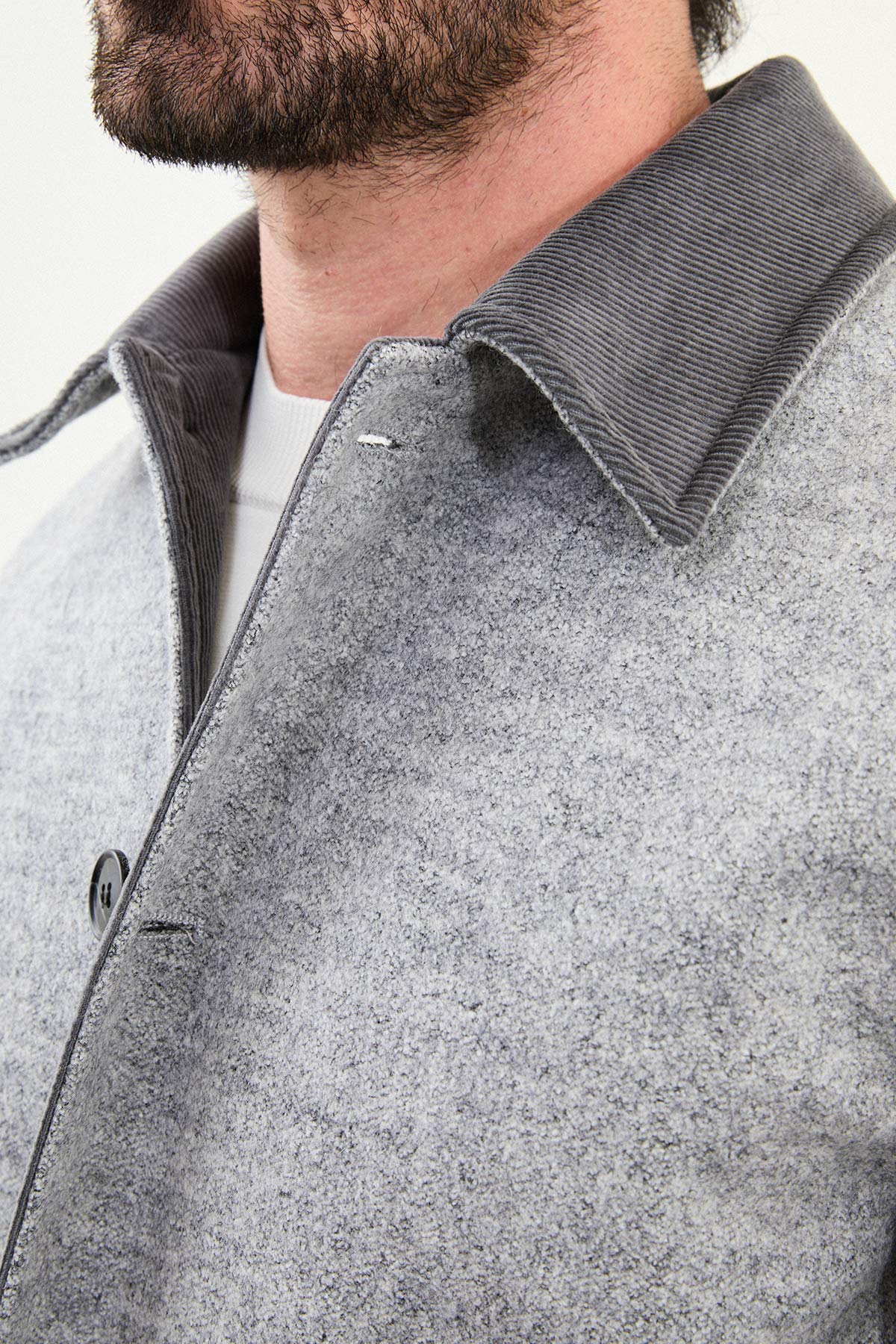Kırçıllı Slim Fit Kadife Yaka Torba Cepli Erkek Trenchcoat