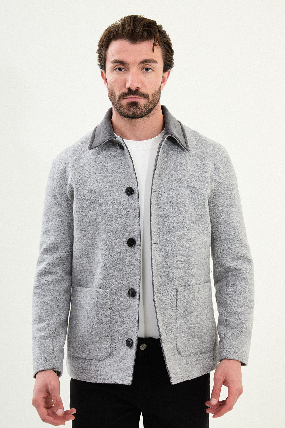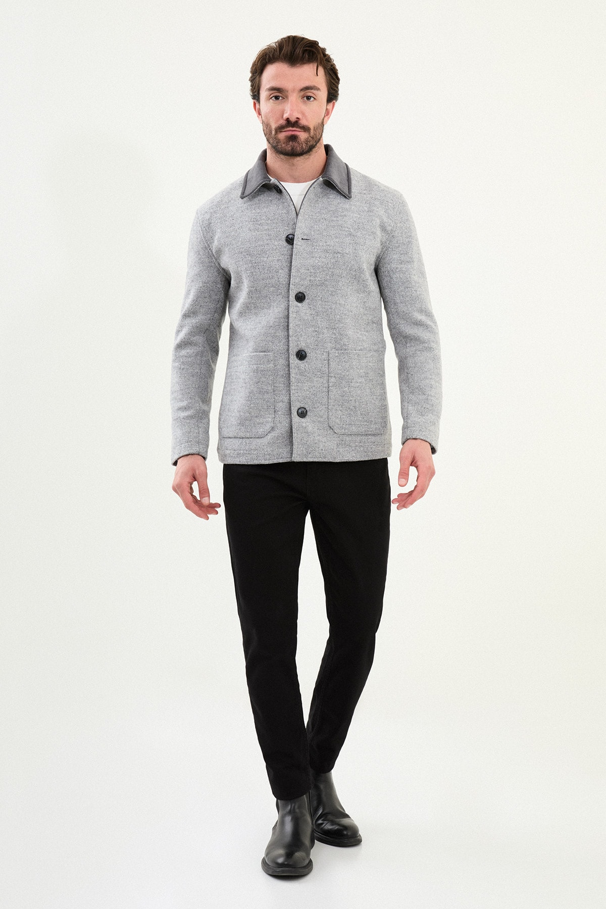 Balıksırtı Slim Fit Şal Yaka Kaşe Erkek Kaban - Siyah-Beyaz